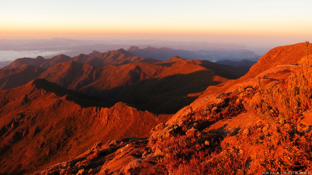 Bom, mas vamos parar de falar de coisas ruins e vamos voltar as coisas boas que foram infinitamente maiores: o nascer do sol no Bandeira. Ahhh, como foi lindo. Toda a cadeia de montanhas do Caparaó se tingia de laranja enquanto o sol ia dando o ar de sua graça.